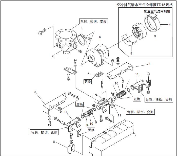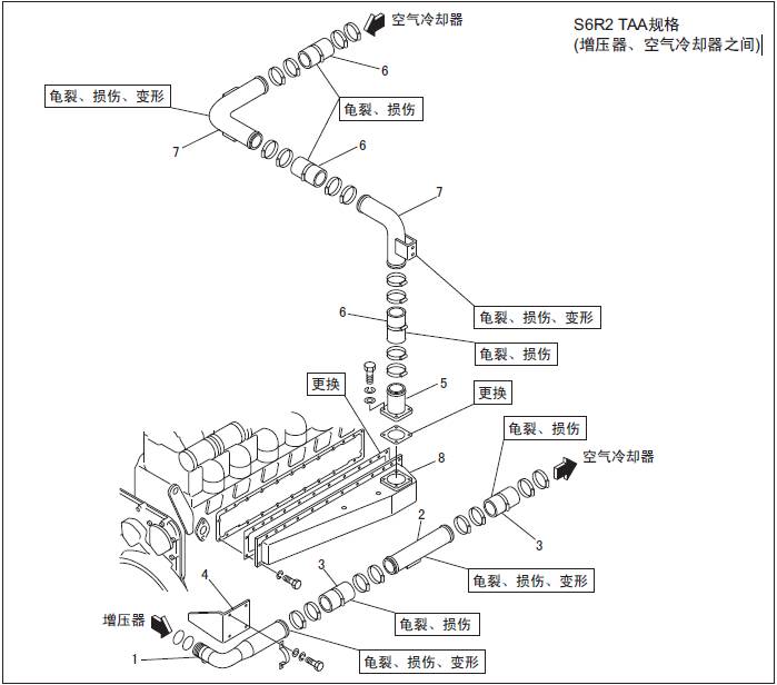 1.2 三菱S6R發動機排氣系統的拆卸,檢測