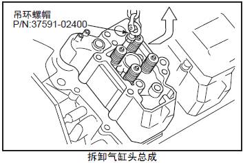 注: 三菱S12柴油發動機氣缸頭由定位銷固定,要垂直于安裝面拆卸。