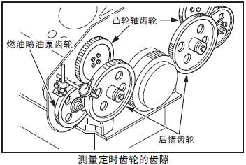 檢測要領(lǐng)參考「三菱S12柴油發(fā)動(dòng)機(jī)本體的組裝」的「檢測三菱S12柴油發(fā)動(dòng)機(jī)正時(shí)齒輪的齒隙」項(xiàng)。