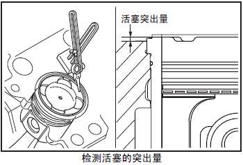 檢測要領參考「三菱S12柴油發動機本體的組裝」的「檢測三菱S12柴油發動機活塞的突出量」項。