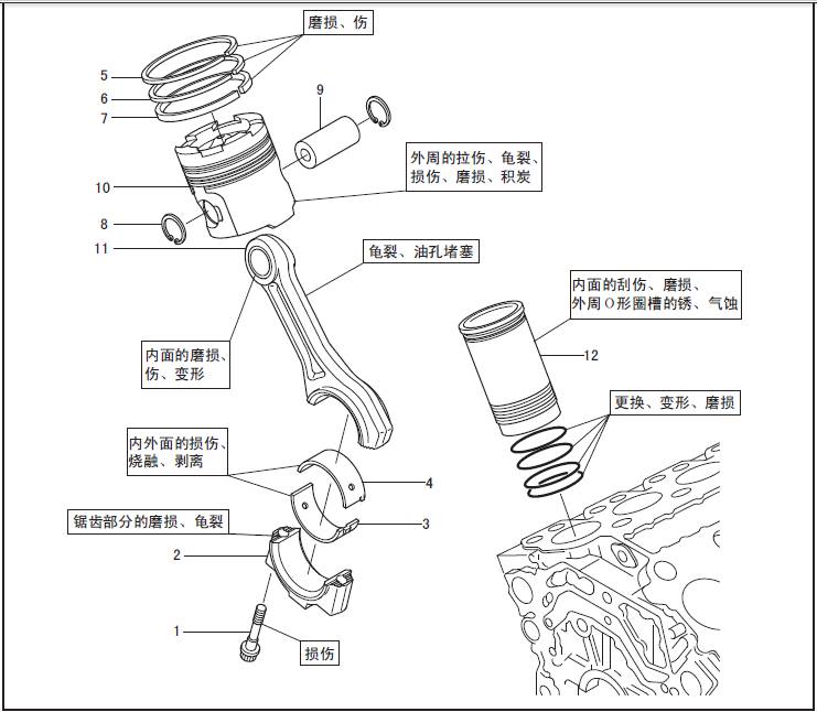 三菱S12柴油發動機缸套、活塞、連桿的解體、檢修技術數據