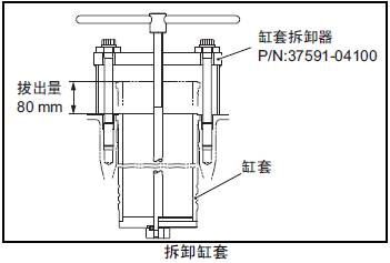 (1) 在三菱S12柴油發動機缸套上安裝三菱S12柴油發動機缸套拆卸器。