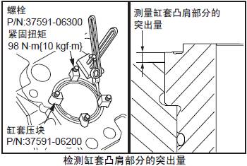 檢測要領參考「三菱S12柴油發動機本體的組裝」的「檢測三菱S12柴油發動機缸套凸肩部分的突出量」項。