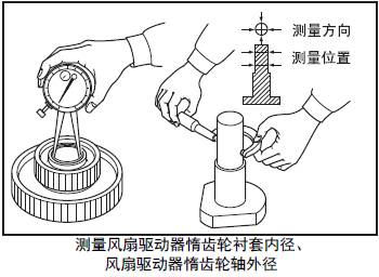 3.3 測量三菱R16柴油發動機風扇驅動器三菱R16柴油發動機惰齒輪襯套內徑、三菱R16柴油發動機風扇驅動器三菱R16柴油發動機惰齒輪軸外徑( 三菱R16柴油發動機風扇配置規格)