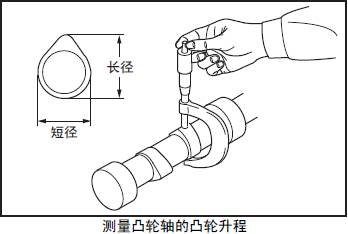 測量各凸輪的長徑和短徑,求出凸輪升程。超過極限值時更換新的三菱R16柴油發動機凸輪軸