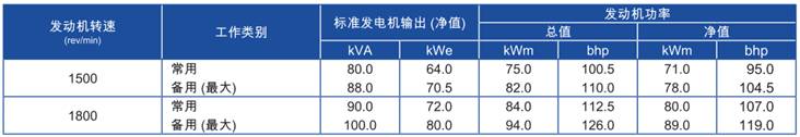 上表所有額定功率數(shù)據(jù)均為ISO/TR 14396/IS0 8528條件下操作時數(shù)據(jù)。